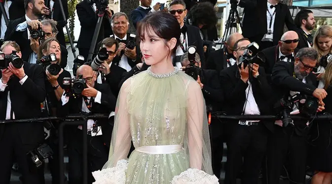 Pesona IU dengan Balutan Gaun Hijau Gucci di Festival Film Cannes, Elegan Bak Putri
