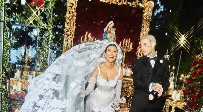Gaya 8 Seleb di Nikahan Kourtney Kardashian dan Travis Barker, Kim Kardashian Tampil Bergaya Gothic