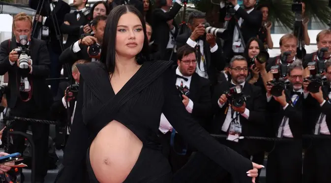 Ikuti Jejak Rihanna, Adriana Lima Tampil Glamor dengan Pamer Baby Bump di Festival Film Cannes