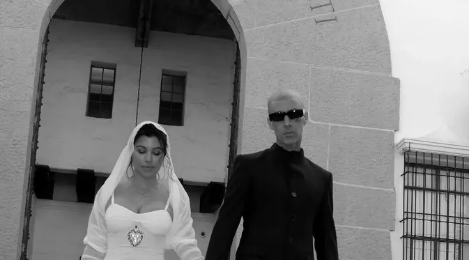 Selebrasi Sederhana Kourtney Kardashian Menikah Secara Legal dengan Travis Baker, Kenakan Gaun Mini dan Veil Dramatis