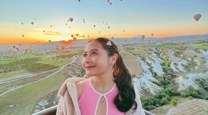 Cantiknya Potret Prilly Latuconsina Saat Naik Balon Udara di Cappadocia dengan Dress Pink, Harganya Cuma Rp500ribuan