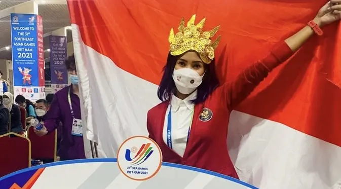 SelengkapnyaPotret Emilia Nova Atlet Atletik Pembawa Bendera Indonesia di Opening Sea Games Vietnam, Kenakan Cardigan Merah Berlambang Garuda