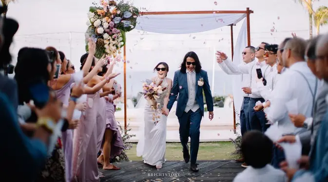 Busana Effortless Ello dan Cindy Maria di Pernikahan Romantis Pinggir Pantai
