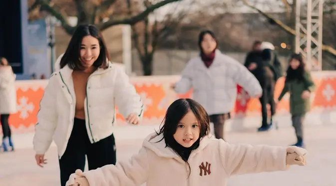 8 Gaya Kompak Gisella Anastasia dan Gempi Main Ice Skating di London